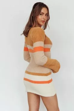 Indi Luxe Count On It Fuzzy Knit Mini Dress Brown Multi