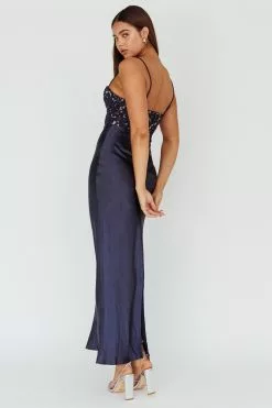 Here Comes The Sun Evening Star Lace Bodice Maxi Dress Navy