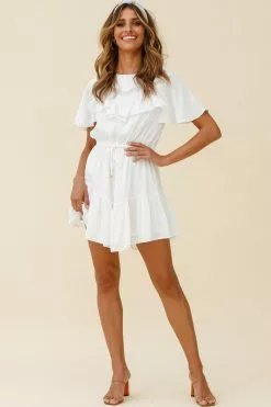 Here Comes The Sun Destined To Be Ruffle Mini Dress Textured White