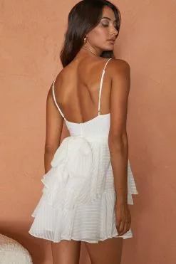 Selfie Leslie Jojo Ruffle Shoulder Low Back Dress White