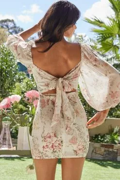 Selfie Leslie Joie Puff Sleeve Shirred Dress Rose Print White