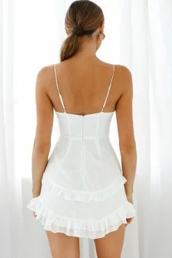 Selfie Leslie Jocelyn Cami Strap Waist Tie Frill Dress White