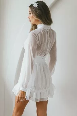 Selfie Leslie Mandalay High Neck Long Sleeve Waistband Dress White