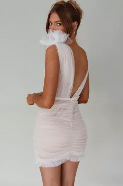 Selfie Leslie Lola Ruffle Shoulder Ruched Dress White
