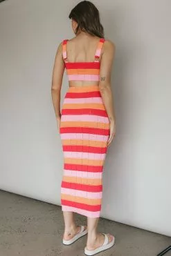 Indi Luxe Chase The Sunrise Knit Maxi Skirt Striped Pink