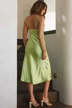 Selfie Leslie Well Versed Pleated Bust Front Split Dress Lime