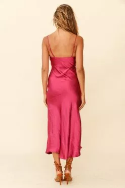 Selfie Leslie Well Versed Pleated Bust Front Split Dress Fuchsia