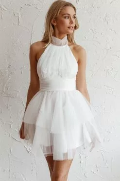 Selfie Leslie Andria Halterneck Tulle Mini Dress White