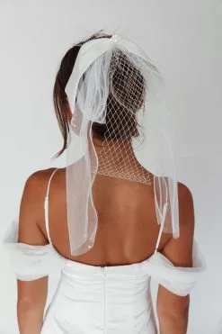 Selfie Leslie Esther Pearl & Bow Bridal Veil White