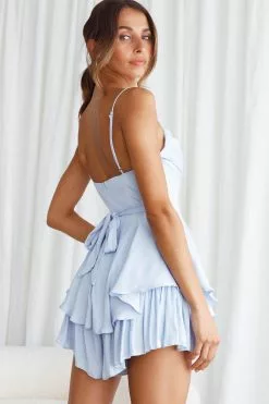 Selfie Leslie Well Versed Cowl Neck Flounce Romper Sky