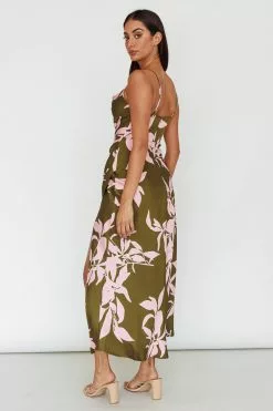 Here Comes The Sun Morea Cowl Neck Maxi Dress Floral Green
