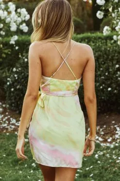 Selfie Leslie Medellin Gathered Detail Side-Tie Wrap Dress Tie-Dye Pink/Yellow