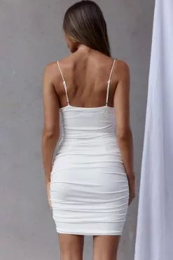 Selfie Leslie Bridie One Shoulder Shirred Mini Dress White