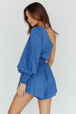 INDIKAH Summer Lover One-Shoulder Long Sleeve Romper Blue