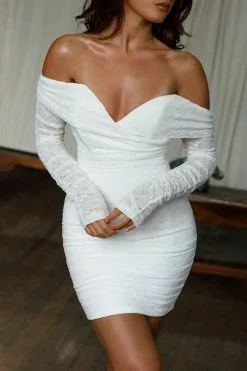 Selfie Leslie Moonrise Off-Shoulder Long Sleeve Dress Lace White