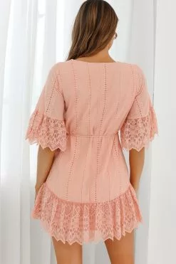 Karissa Lace Trim Waist Tie Tunic Dress Blush