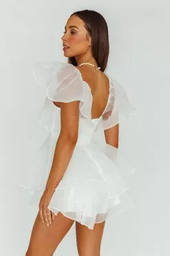 Selfie Leslie Aphrodite Angel Sleeve Layered Romper White
