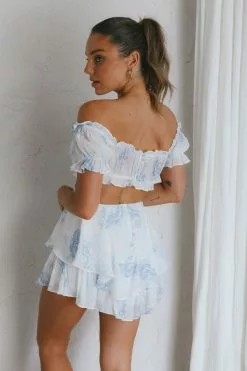 Selfie Leslie Cielito Embellished Crop Top Light Blue