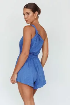 INDIKAH Summer Lover One-Shoulder Romper Blue
