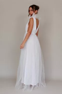 Selfie Leslie Mandalay High Neck Long Sleeve Waistband Dress White