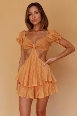 Saints + Secrets Vacay Mode Shirred Bust Romper Orange