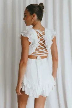 Saints + Secrets Charade Ruffle Shoulder Corset Back Dress White