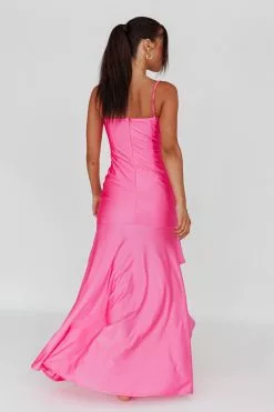 Mika&Gala Rosalia Ruched Ruffle Maxi Dress Fuchsia