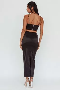 Saints + Secrets Zeina Satin Midi Skirt Black