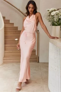 Selfie Leslie India Cowl Halterneck Satin Maxi Dress Blush