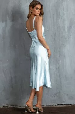 Selfie Leslie Perfect Day Satin Midi Dress Steel Blue