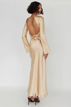 Here Comes The Sun Lavera Open Back Long Sleeve Dress Beige