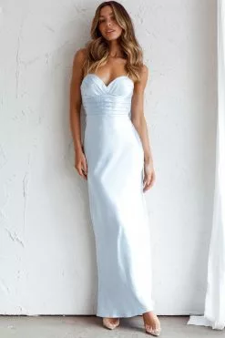 Here Comes The Sun Azara Pintuck Bodice Maxi Dress Steel Blue