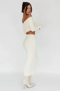 Here Comes The Sun Tamar Long Sleeve One-Shoulder Midi Dress Cream