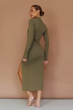 Selfie Leslie Get Acquainted Cut-Out Bust Midi Dress Olive