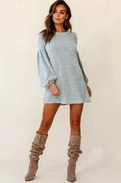 Selfie Leslie Annalise Long Sleeve Drawstring Knit Dress Grey
