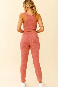 Selfie Leslie Robin Cuffed Hem Drawstring Ribbed Knit Pants Tan