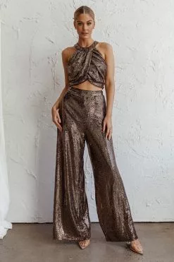 Selfie Leslie Anything Goes Draped Sequin Crop Top Gold