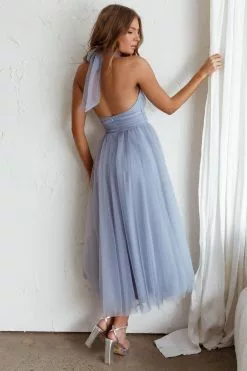 Here Comes The Sun Andria Halterneck Tulle Midi Dress Blue