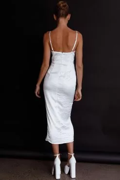 Selfie Leslie Fantasy Structured Bodice Ruched Midi Dress White