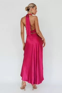 Saints + Secrets Sonoma Halterneck Faux Wrap Twist Back Maxi Dress Fuchsia