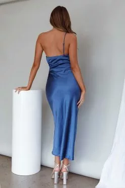 Here Comes The Sun Giorgette Side Split Midi Dress Blue
