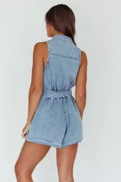 INDIKAH New Day Sleeveless Button-Up Romper Denim Blue