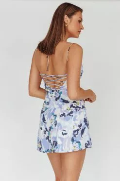 Angel Biba So Cliche Lace-Up Back Mini Dress Floral Purple