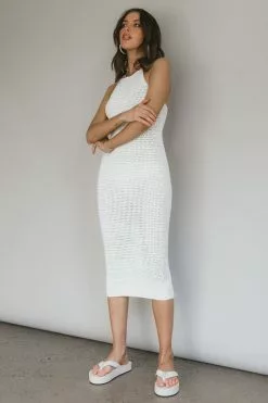 Indi Luxe Soul Sister Tied Back Crochet Midi Dress White