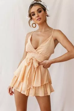 Selfie Leslie Happy Thoughts Tied Shoulder Romper Yellow Multi