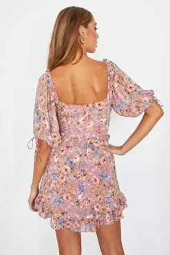 Angel Biba Kirra Puff Sleeve Ruched Bodice Dress Floral Pink