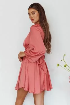 Here Comes The Sun Leia Long Sleeve Waist Tie Mini Dress Rose