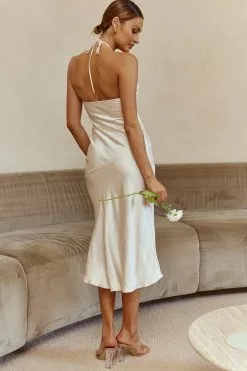 Selfie Leslie Kindred Spirit Strapless Gathered Bust Midi Dress Champagne