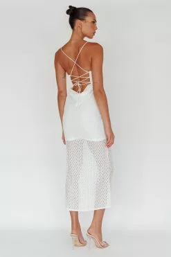Indi Luxe Lazy Daisy Flower Strap Midi Dress White