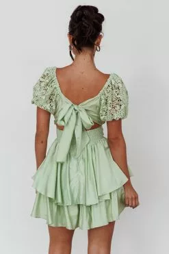 Selfie Leslie Hold My Halo Lace Sleeve Romper Sage